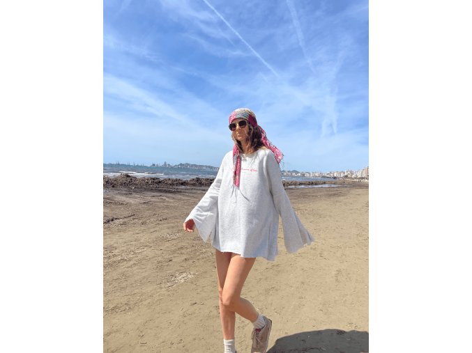 Zvonové rukávy dodávají mikině originální a elegantní prvek, který mikinu BELIEVE odlišuje od běžných outfitů. Mikina je lehkého a vzdušného střihu, což je ideální pro letní měsíce, v chladnějších měsících je perfektní pro vrstvení.