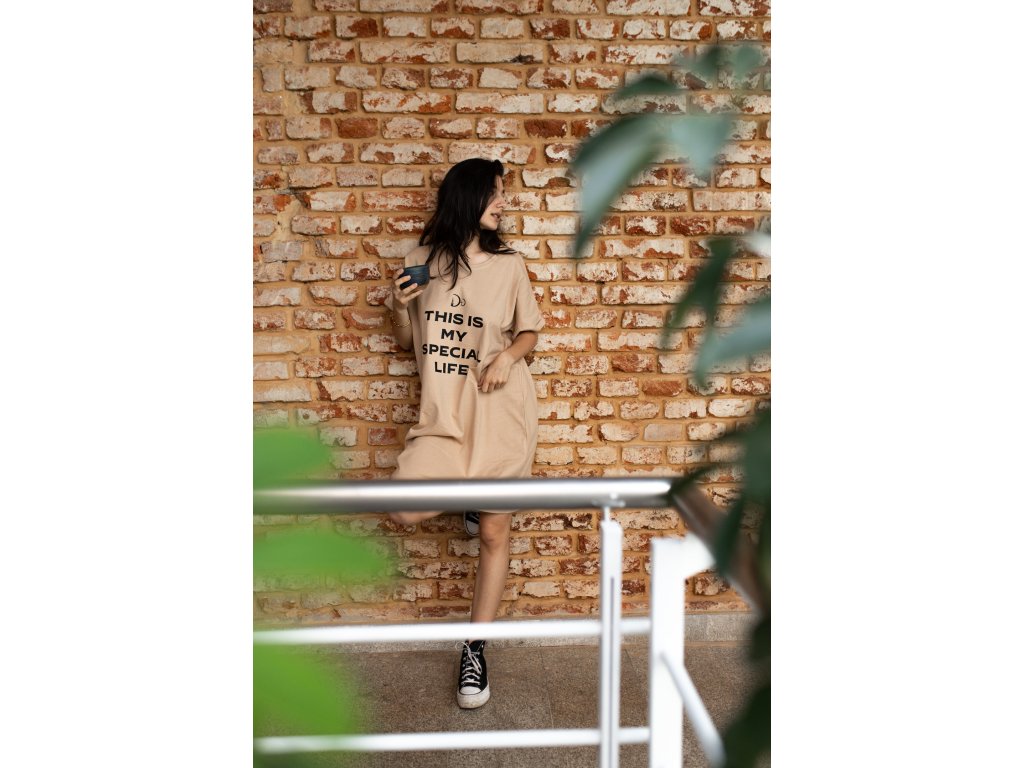 Šaty jsou výsledkem ruční práce a proto se uvedené rozměry mohou trošku lišit. Pokud s vámi poselství těchto šatů rezonuje, věřte, že vám sednou přesně tak, jak mají. Šaty můžete nosit volně, s páskem i jako delší tričko k legínám.