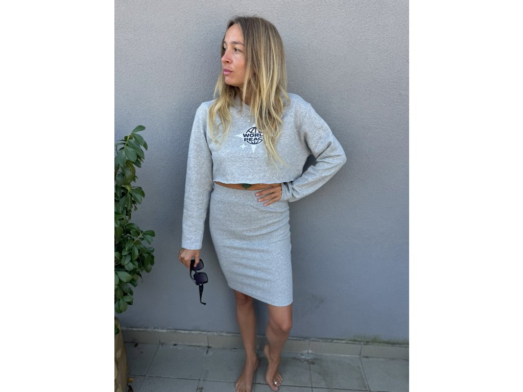 Jak vidíte na fotce, této sukni sluší crop mikina PEACE.
